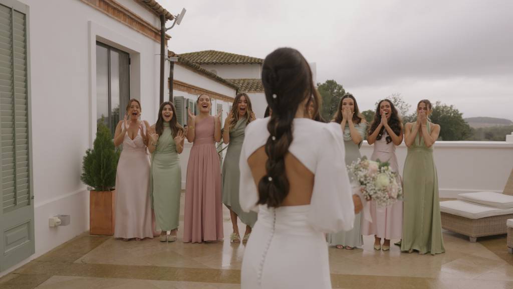 La pareja estuvo arropada por sus damas de honor, amigos y familiares que convirtieron cada escena en algo auténtico y real. Y como colofón, el regalo sorpresa del hermano: unos fuegos artificiales que pusieron el broche de oro a una boda llena de emociones.
